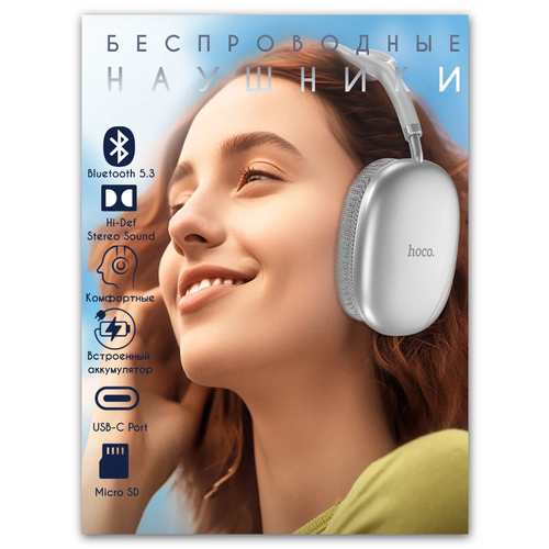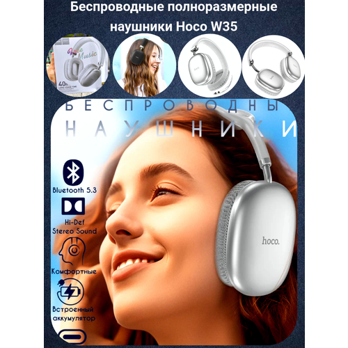 Наушники беспроводные Hoco W35 Max, BT 5.3, 90ч работы, серебристые
