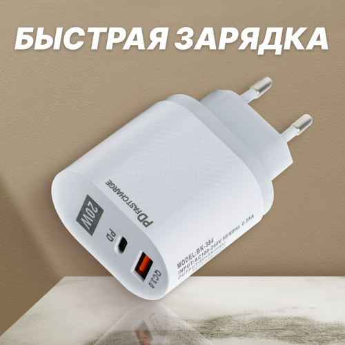 Мощное сетевое зарядное устройство 20W BK-384 быстрая зарядка QC 3.0, PD 3.0 / Адаптер питания USB и USB Type-C 20 Вт / Quick Charge, ( )