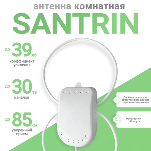 Антенна для цифрового тв комнатная активная Santrin c блоком 12в с присоской