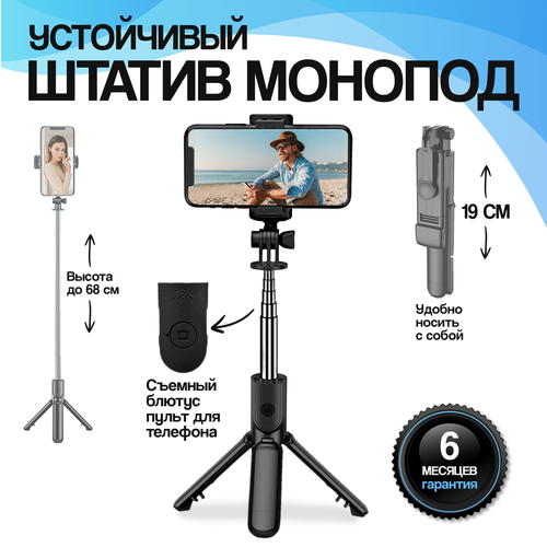 Монопод-трипод с подсветкой для селфи R1L, встроенный штатив трипод с регулируемым держателем для телефона и Bluetooth пультом