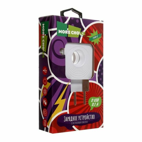 Сетевое зарядное устройство More choice NC48a, 2UCB, 2.1А, кабель Type-C, подсветка, (комплект из 4 шт)