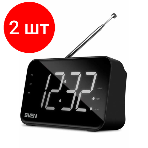 Комплект 2 штук, Радиоприемник SVEN SRP-100, (чер 2В RMS, FM, LED-дисп, вст часы и буд, вст акб)