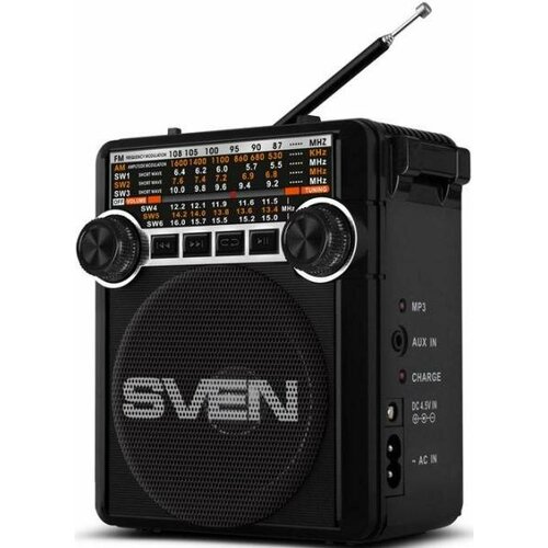 Радиоприёмник SVEN SRP-505 чёрный (4 Вт, FM/AM/SW, USB, SD/microSD, Bluetooth, 1200 мАч)