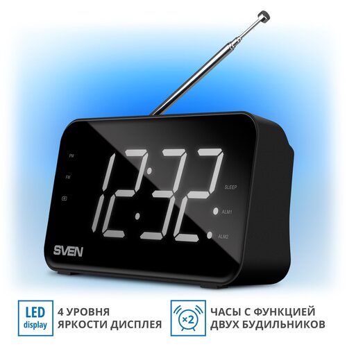 Радиоприемник SVEN SRP-100, (чер 2В RMS, FM, LED-дисп, вст часы и буд, вст акб)