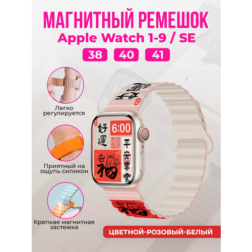 Магнитный силиконовый ремешок для Apple Watch 1-9 / SE (38/40/41 мм), цветной-розовый-белый