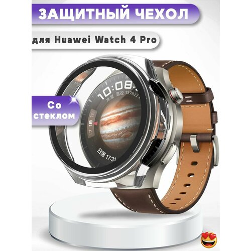 Защитный жесткий чехол с закаленным стеклом для Huawei Watch 4 Pro - прозрачный