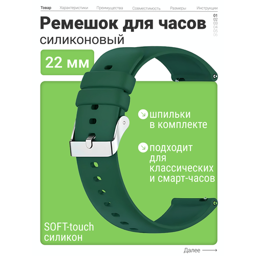 Ремешок для смарт часов 22 мм Samsung , Amazfit , Xiaomi , Honor , Garmin , силиконовый , темно-зеленый