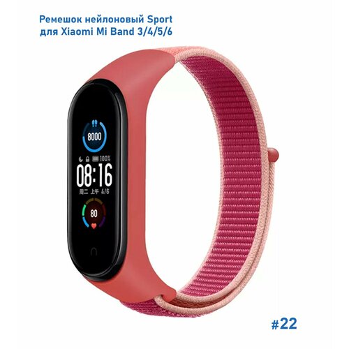 Ремешок нейлоновый Sport для Xiaomi Mi Band 3/4/5/6/7, на липучке, ярко-розовый (22)