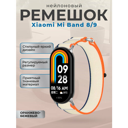Нейлоновый ремешок с петлей для Xiaomi Mi Band 8 / 9, оранжево-бежевый