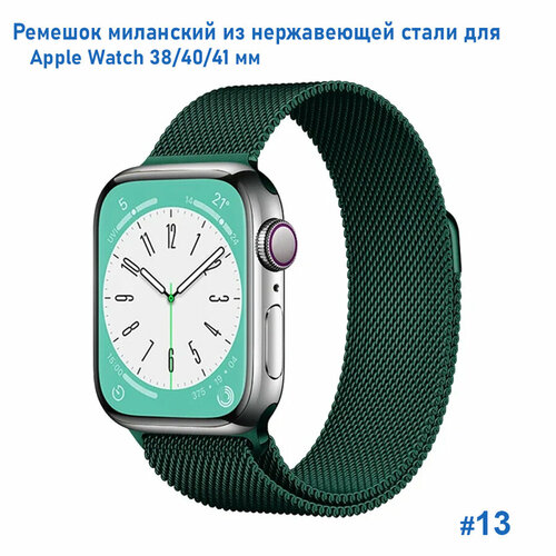 Ремешок миланcкий из нержавеющей стали Milanese Loop для Apple Watch 38/40/41 мм, на магните, темно-зеленый (13)