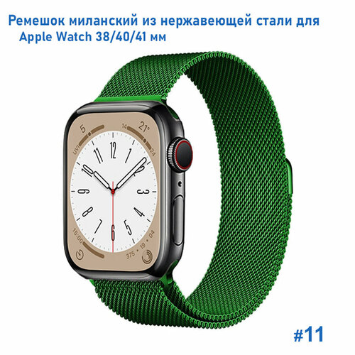 Ремешок миланcкий из нержавеющей стали Milanese Loop для Apple Watch 38/40/41 мм, на магните, зеленый (11)