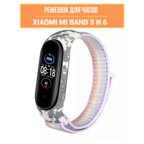 Нейлоновый ремешок для Mi Band 3/ Mi Band 4 / Mi Band 5 / Mi Band 6 камуфляж (белый с серым/разноцветный)