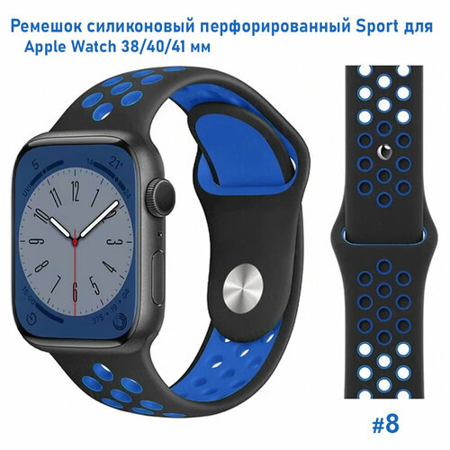 Ремешок силиконовый перфорированный Sport NK для Apple Watch 38/40/41 мм, на кнопке, черный+синий (8)