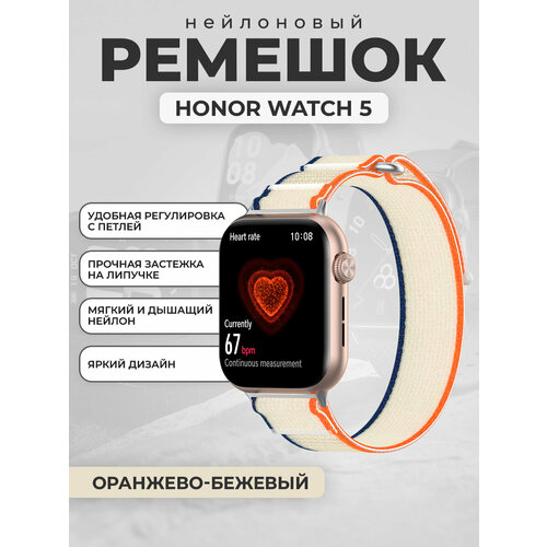 Нейлоновый ремешок с петлей для Honor Watch 5 , оранжево-бежевый