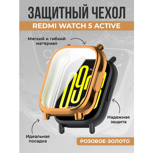 Мягкий защитный чехол для Redmi Watch 5 Active, розовое-золото