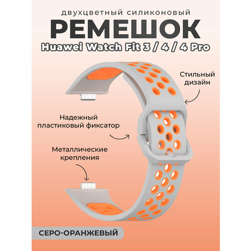Двухцветный силиконовый ремешок для Huawei Watch Fit 3, серо-оранжевый