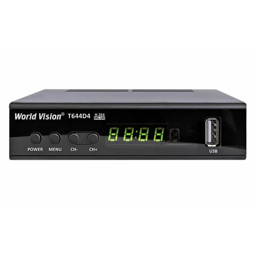 TV-тюнер World Vision T644 D4 (T2+C, пластик, с дисплеем и кнопками, встроенный БП, IPTV, DD)