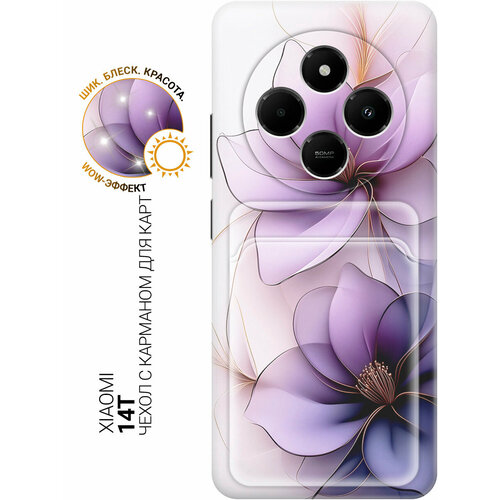 Силиконовый чехол на Xiaomi Redmi 14C / Poco C75 с принтом "Сиреневые цветы" с карманом для карты
