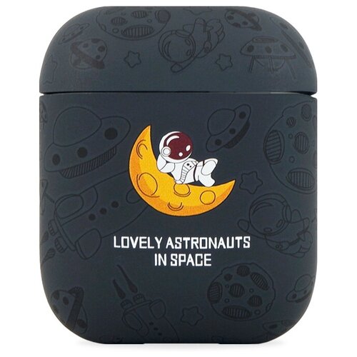 Ультратонкий чехол для Apple AirPods 1/2/ Ударопрочный силиконовый кейс для беспроводных наушников Эпл Аирподс 1/2 (Lovely Astronauts), Черный