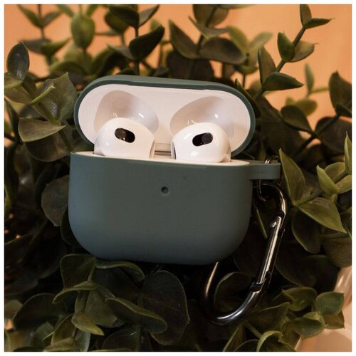 Ультратонкий чехол для Apple AirPods 3/ Силиконовый кейс с карабином для беспроводных наушников Эпл Аирподс 3 из гибкого силикона (Advanced ash)