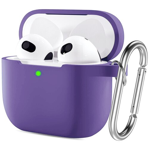 Ультратонкий чехол для Apple AirPods 3/ Силиконовый кейс с карабином для беспроводных наушников Эпл Аирподс 3 из гибкого силикона (Purple)