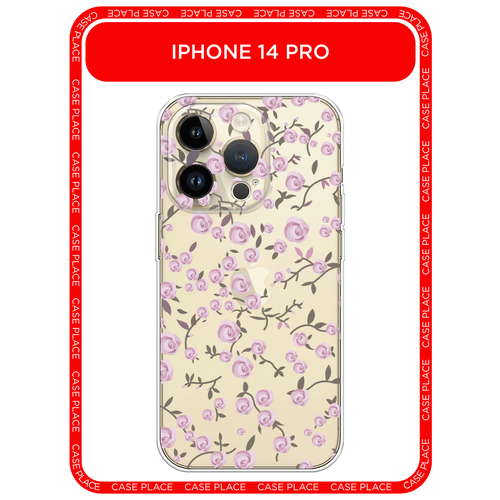 Чехол на Apple iPhone 14 Pro / Айфон 14 Про с принтом Нежно-розовые розы 2, прозрачный