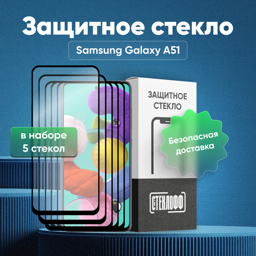 Набор защитных стекол для Samsung Galaxy A51 c полным покрытием, серия Стеклофф Base, 5 шт