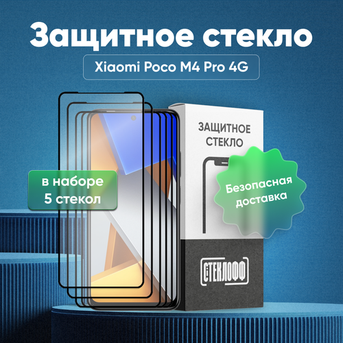Набор защитных стекол для Xiaomi Poco M4 Pro 4G c полным покрытием, серия Стеклофф Base, 5 шт