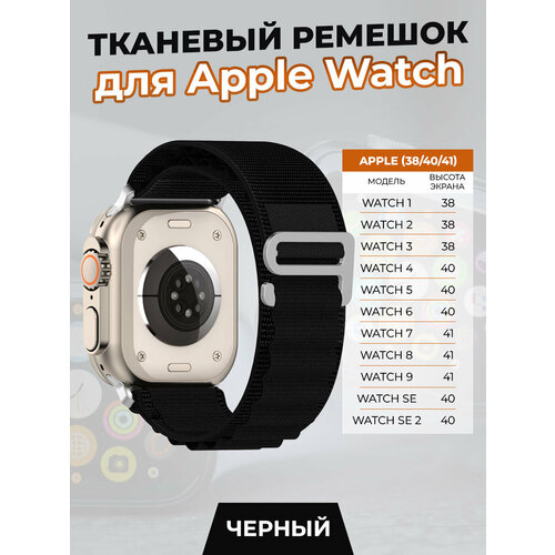 Тканевый ремешок для Apple Watch 1-9 / SE (38/40/41 мм), черный