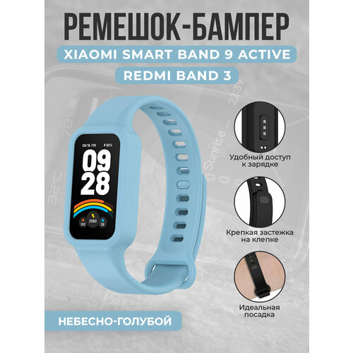 Силиконовый ремешок-бампер для Xiaomi Smart Band 9 Active / Redmi Band 3, небесно-голубой