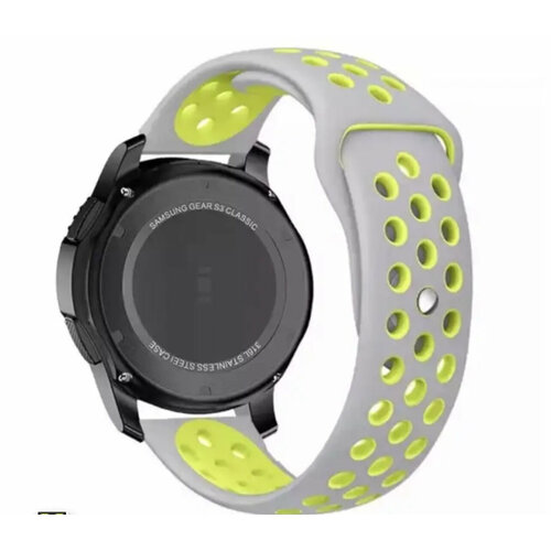 Универсальный спортивный ремешок для часов Huawei, Samsung, Garmin, 22 мм. серый/желтый.