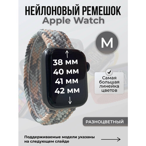 Нейлоновый ремешок для Apple Watch 1-9 / SE (38/40/41 мм), без застежки, разноцветный, размер M