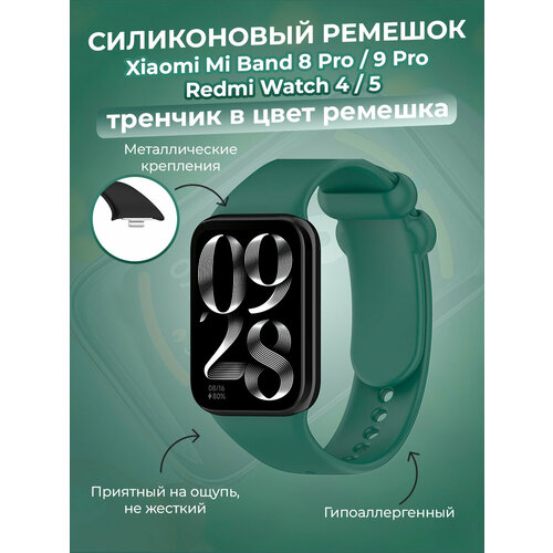 Силиконовый ремешок для Xiaomi Mi Band 8 Pro/9 Pro и Redmi Watch 4/5, тренчик в цвет ремешка, темно-зеленый