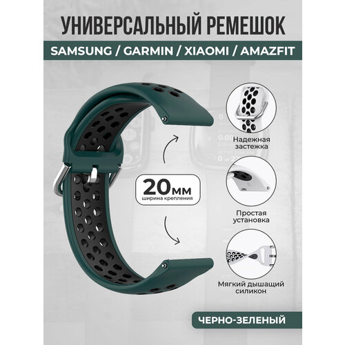 Универсальный ремешок для Samsung, Garmin, Xiaomi, Amazfit, 20 мм, черно-зеленый