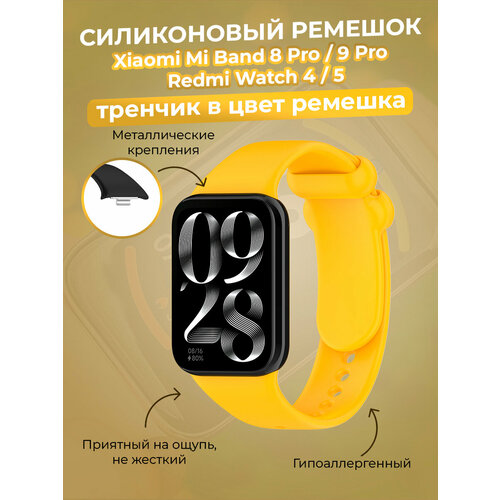 Силиконовый ремешок для Xiaomi Mi Band 8 Pro/9 Pro и Redmi Watch 4/5, тренчик в цвет ремешка, желтый