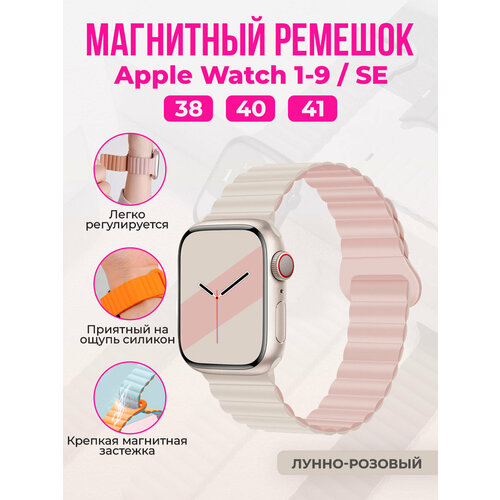 Магнитный силиконовый ремешок для Apple Watch 1-9 / SE (38/40/41 мм), лунно-розовый
