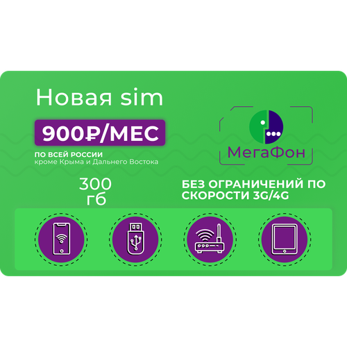 Сим-карта Мегафон 300 гб в 3G/4G за 900 руб/мес