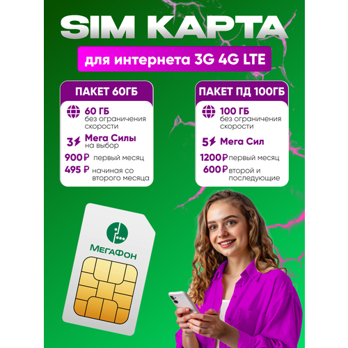 Мегафон Сим-карты 60/100Гб за 600₽/мес