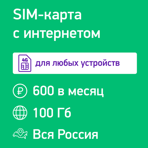 SIM-карта Мегафон 100 Гб за 600 ₽/мес интернет 3G/4G/4G+ для автомобиля, роутера и модема с раздачей