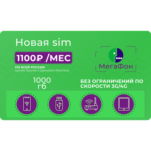 Сим-карта Мегафон 1000 гб в 3G/4G за 1100 руб/мес