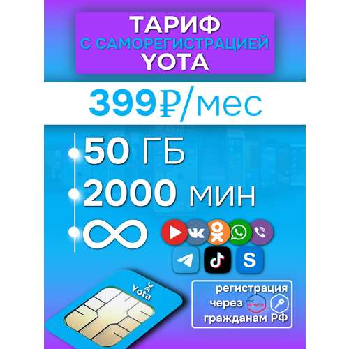 Sim-карта YOTA ПОПРОБУЙ МАКСИМУМ 50 ГБ/2000 минут/399р./мес. Действует по всей России