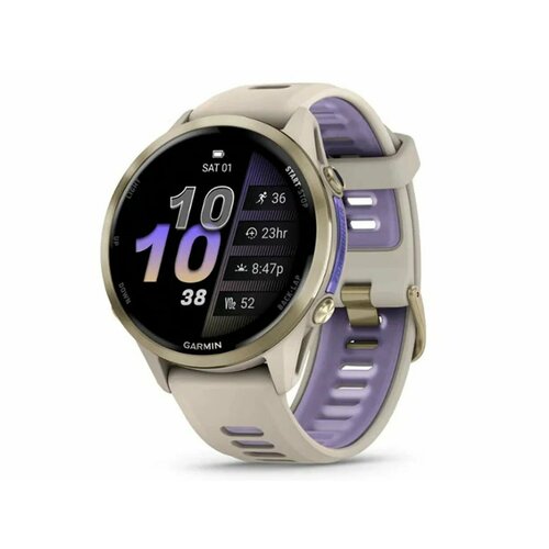Умные часы Garmin Forerunner 970 Soft Gold Titanium with French Gray Case and French Gray/Translucent Indigo Band