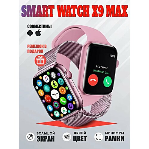 Смарт часы X9 MAX, iOS, Android, 2 ремешка, Bluetooth звонки, уведомления, 45 mm, розовые