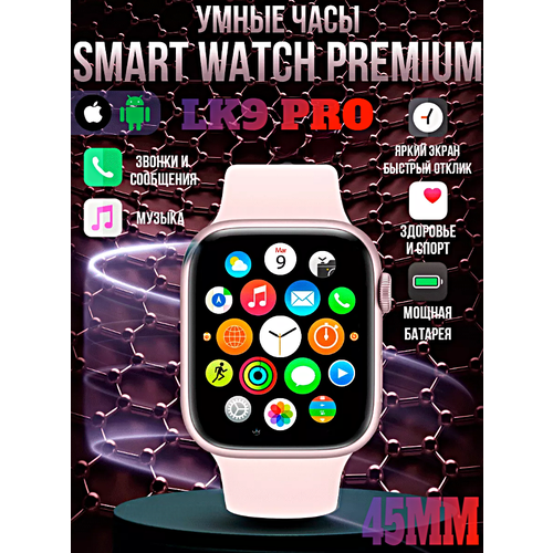 Смарт часы LK9 PRO Умные часы PREMIUM Series Smart Watch AMOLED, iOS, Android, Bluetooth звонки, Уведомления, Розовый