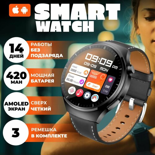Смарт часы Premium black мужские женские smart watch, 3 ремешка, 46мм