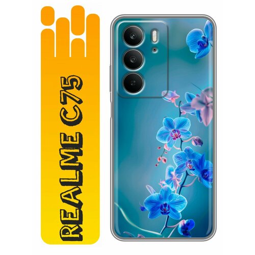 Чехол для Realme C75 4G с принтом Голубые цветы (Реалми С75 4G)