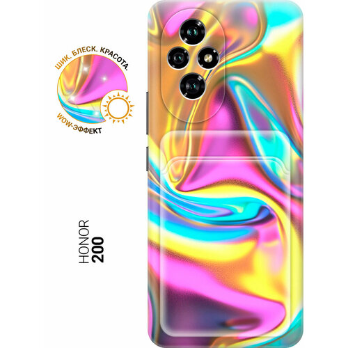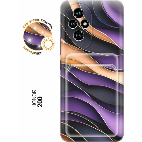 Силиконовый чехол на Honor 200 с принтом "Сиреневые волны" с карманом для карты