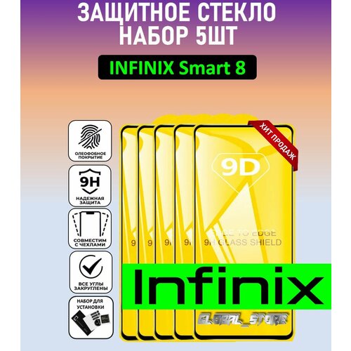 Защитное полноэкранное стекло для Infinix Smart 8 / Набор 5 Штук ( Инфиникс Смарт 8 ) Full Glue