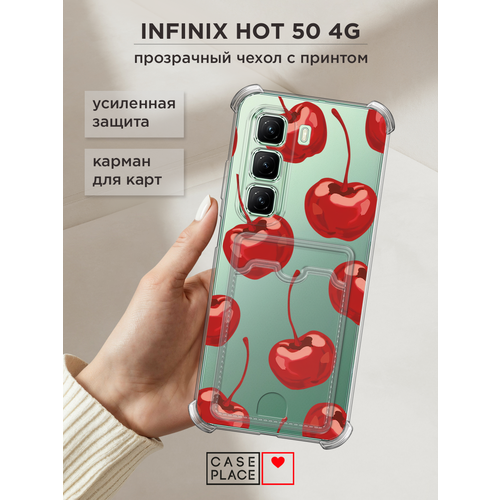 Чехол на Infinix Hot 50 4G (Инфиникс Хот 50 4G) с картой и принтом Алая вишня