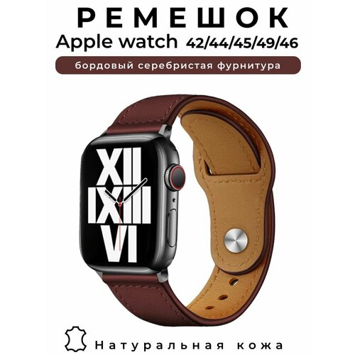Кожаный ремешок для Apple Watch 3 4 5 6 7 8 9 SE Ultra, в корпусах 42, 44, 45, 49, 46 серия 10. Бордовый / Red wine
